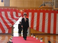 厳かな式の後は、生徒会長の先導によるお見送りです。在校生と教職員の温かい拍手の中...
