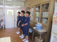 3年生が全員登校しました。いよいよ始まります。職員室で何かを見つけたようです。卒...