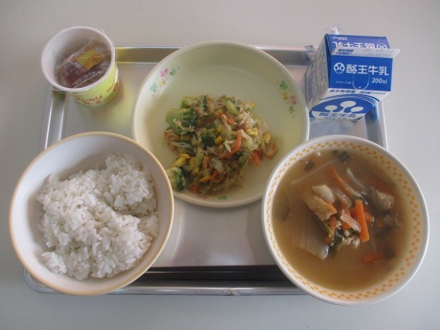 今日の献立は、麦ごはん、牛乳、納豆、ツナと春雨の和え物、鶏団子入りキムチ汁です。...