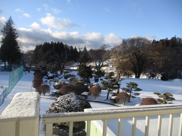 今朝の学校周辺は一面に美しい雪景色が広がっています。冬の柔らかな陽ざしが差し込み...