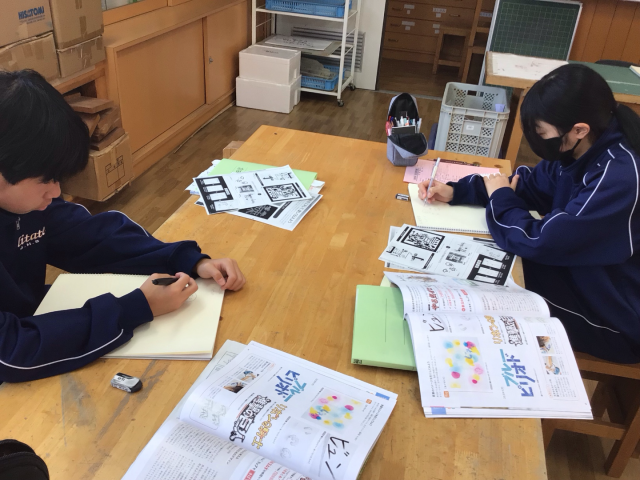 1年生の美術では、現在「絵文字」の制作に取り組んでいます。今日は、自分が表現した...