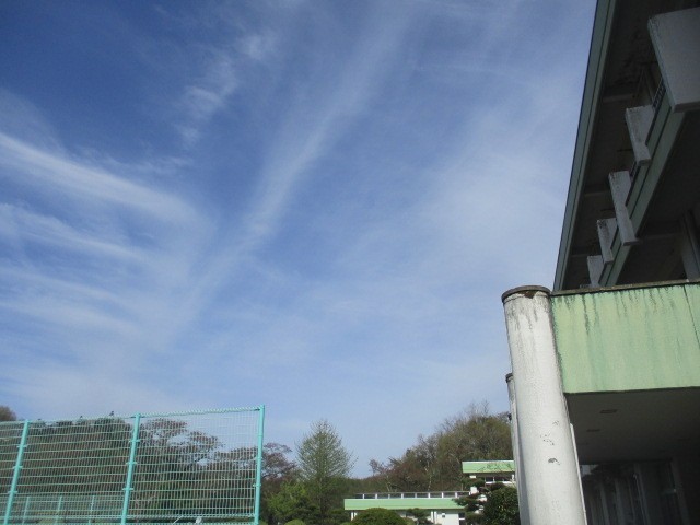 空には見事な飛行機雲です。本日金曜日は全校生で読書に取り組んでいます。