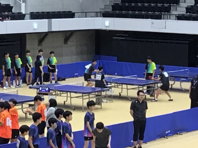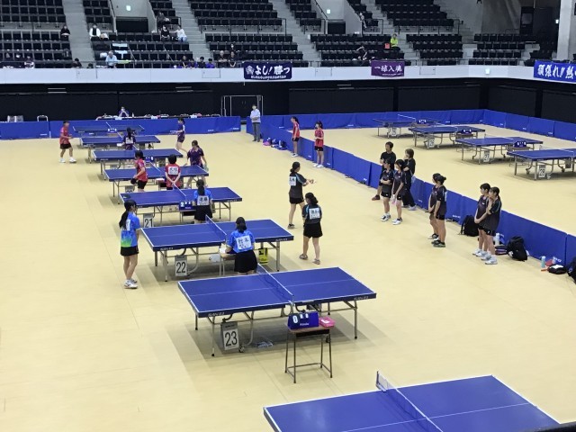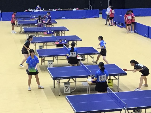 卓球会場では、男女団体決勝トーナメントが行われています。