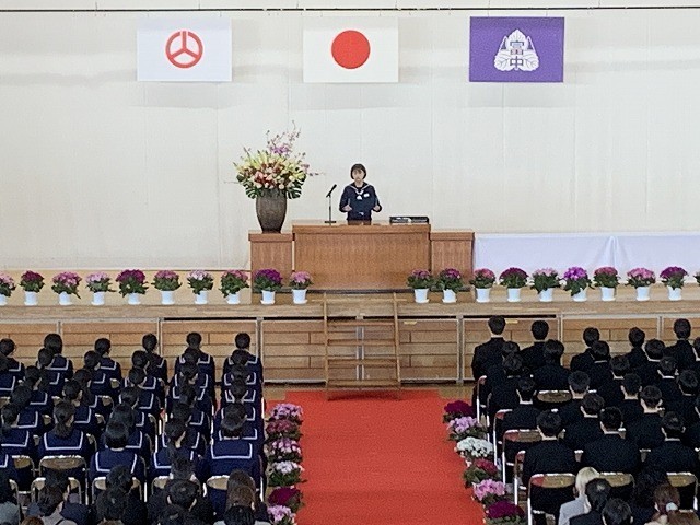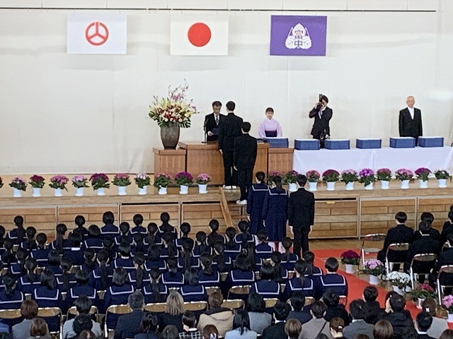 卒業証書授与では、担任の呼名に力強く返事をし、一人ひとりが校長先生から証書を受け取りました。その姿には、中学校生活をやり遂げた自信と、これからの未来へ踏み出す決意が感じられました。
