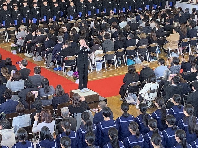 また、在校生代表による送辞では、これまで学校をリードしてくれた先輩方への感謝の思いが語られました。そして卒業生代表による答辞では、友達と過ごした日々や先生方への感謝、そして家族への思いが込められた言葉が述べられました。