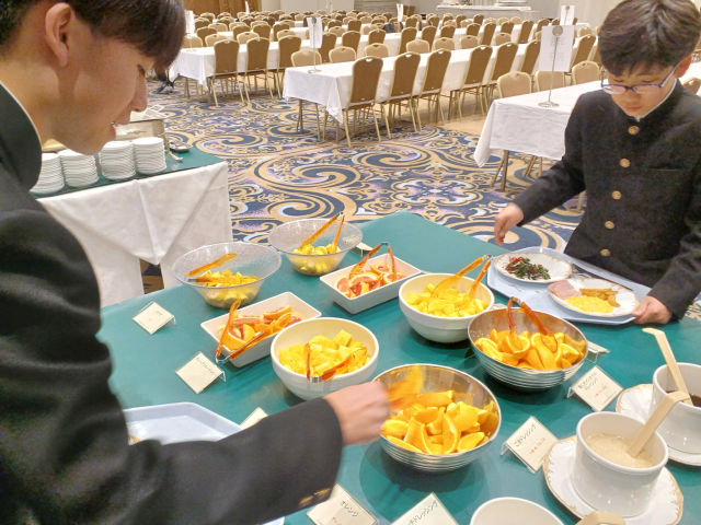 豪華な朝食に舌鼓を打ちました。これでこの後の研修もバッチリです!