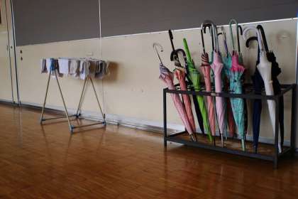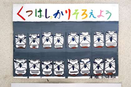 靴は、ロッカーに踵を揃えて入れるようにしています。朝の週番活動で、生活委員会が担当で呼びかけています。また、今日の登校時は小雨が降っていましたが、傘は昇降口で水を切り、教室前の傘入れに立てておきます。