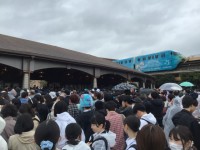 ディズニーシーに並んでいます。25周年のリゾートラインも走っています。