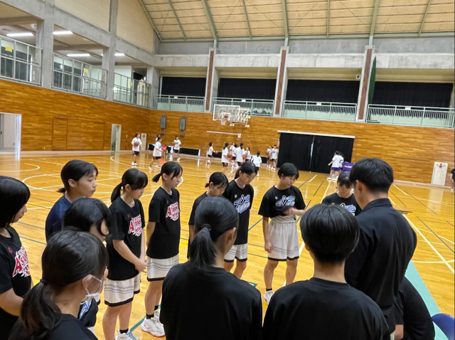 現在、女子バスケ部(郡山七中と合同チーム)が郡山六中との準々決勝に臨んでいます。
