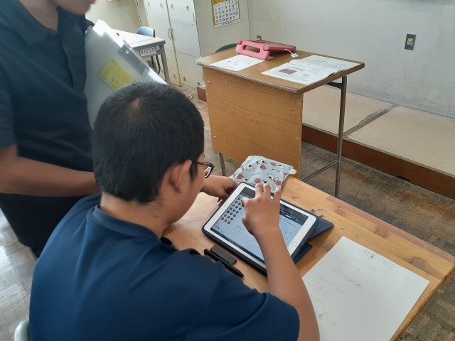 2年生は5校時、1年生は6校時の実施でしたが、1、2年生とも、入力方法などを確認しながら試しの問題を真剣に解いていました。