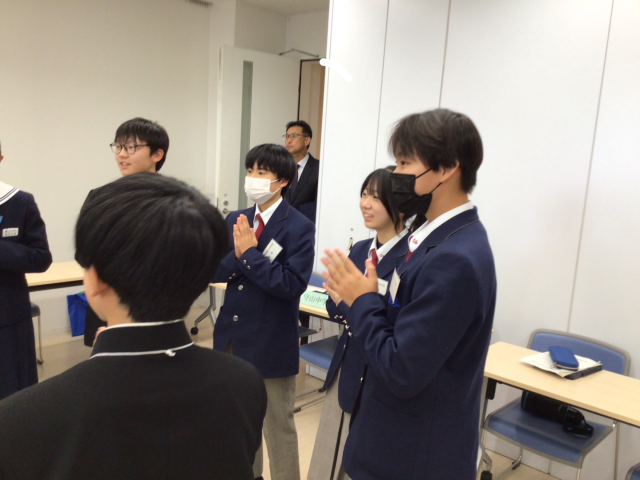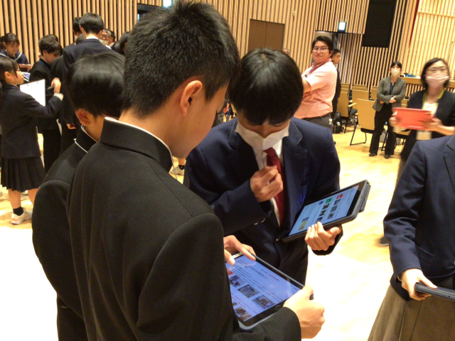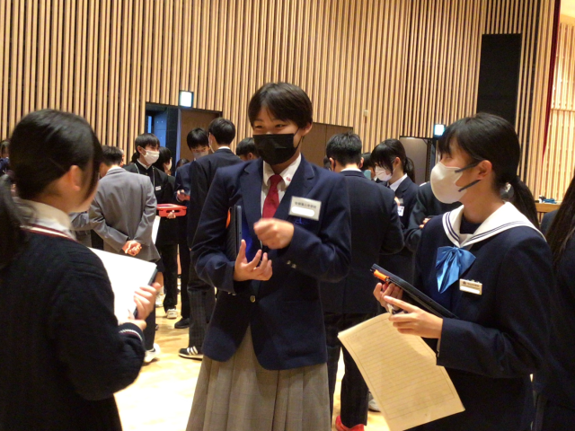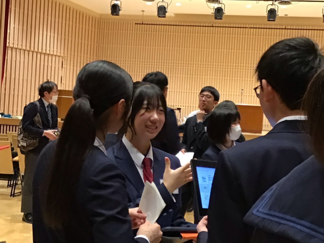 その後に行われた意見交換会では、他校の生徒と積極的にコミュニケーションをとっていました。