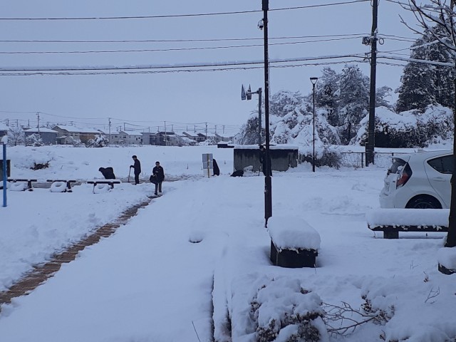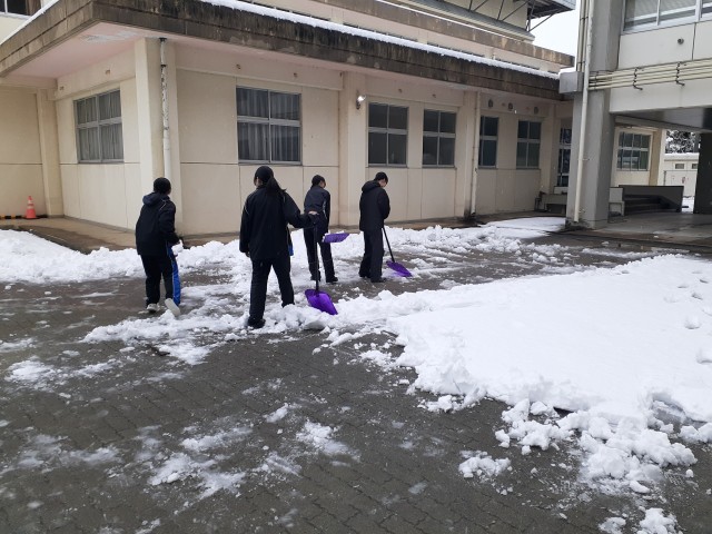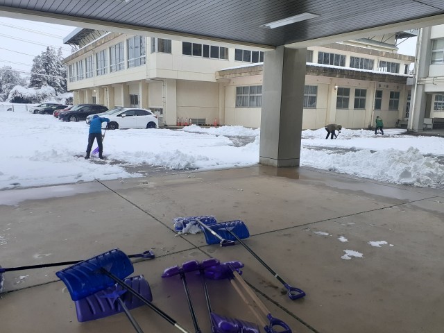 今朝はいつもより早く出勤した本校職員が、登校する生徒のために雪かきを行いました。