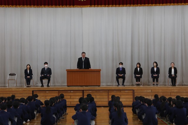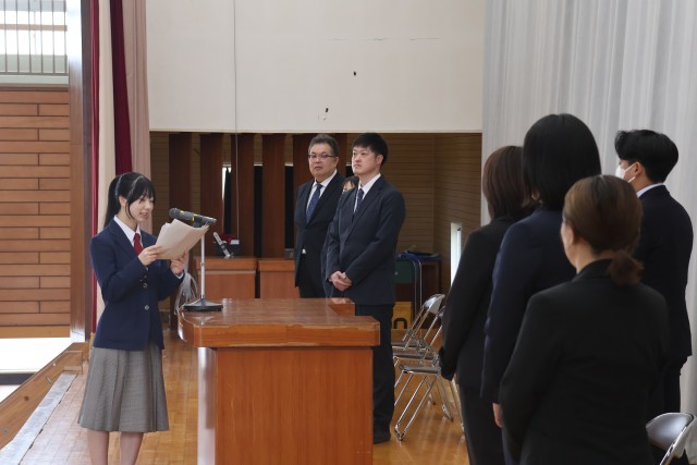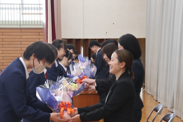 本年度は7名の教職員が本校を離れることとなり、それぞれから生徒へ向けて、これまでの思い出や感謝の言葉が語られました。