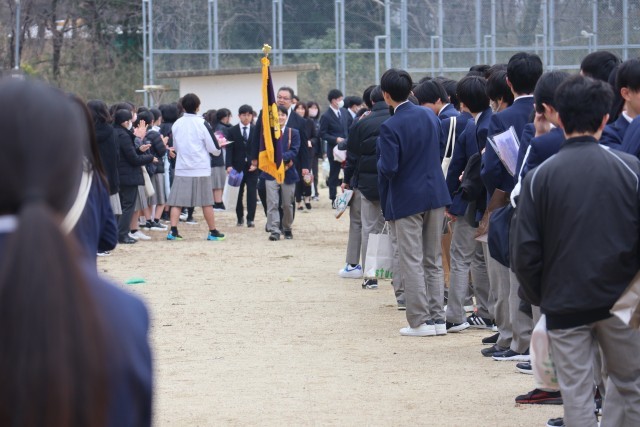 式後の見送りでは、応援団によるエールが送られ、先生方の新たな門出を力強く後押ししました。