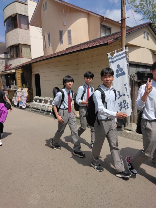 江ノ電に乗車し、車窓からの景色を楽しみながら長谷方面へ移動しました。長谷寺では、庭園や観音像を見学し、鎌倉の自然や文化を感じる時間となりました。班で協力して行動する姿が印象的でした。