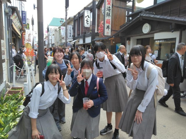 小町通りでは、にぎやかな通りを散策しながら、鎌倉の雰囲気を楽しむ様子が見られました。班で声をかけ合いながら行動し、充実した時間を過ごしていました。