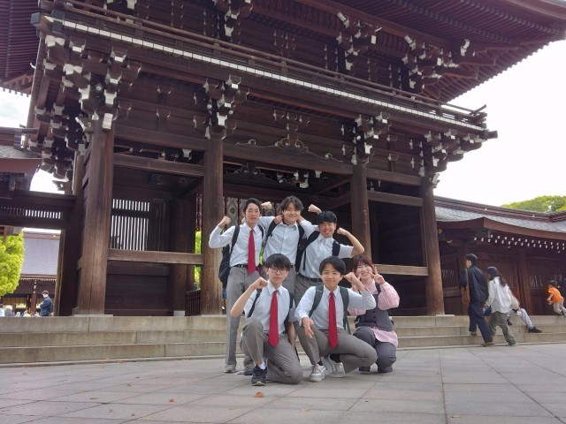 明治神宮では、落ち着いた雰囲気の中で参道を歩き、見学を行いました。