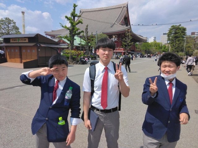 浅草散策のクラスは、雷門付近を自由に見て回っています。