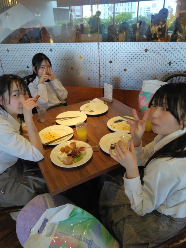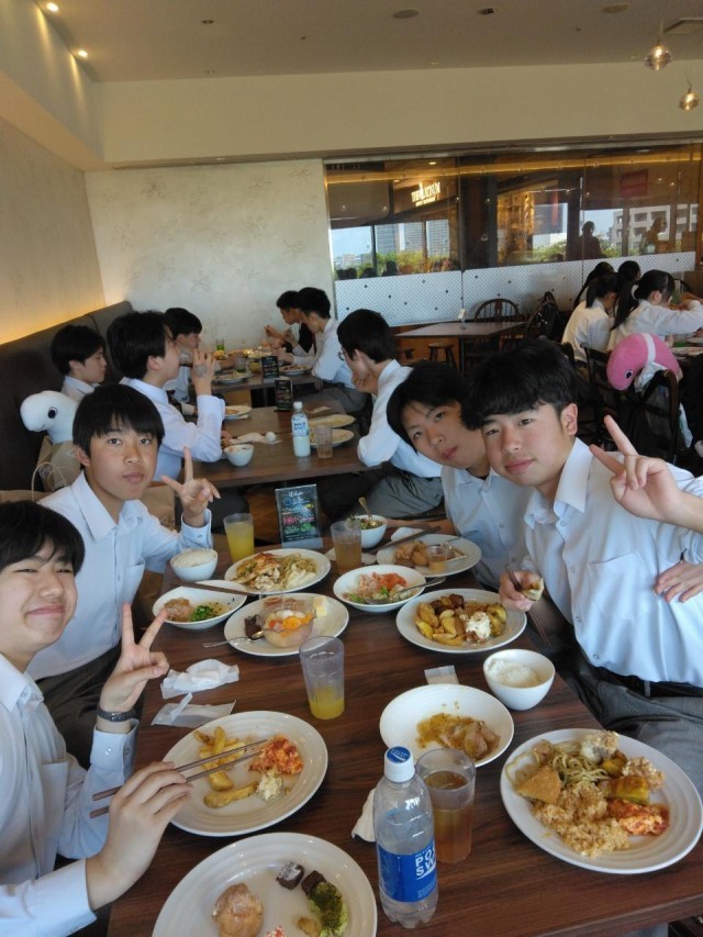 修学旅行最後の食事。名残を惜しみつつも、ゆったりとした時間を過ごすことができました。