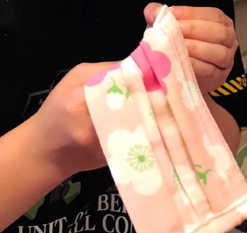 ・手作りマスクを作りました。思ったよりも難しくて何度も糸をほどきながら、上手に作ることができました。