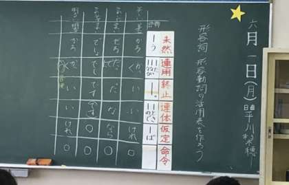 3年生の国語の授業です。形容詞と形容動詞の活用について学びました。真剣な態度で、教師の発問に答えていました。さすが、3年生。