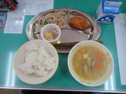 今日の給食は、麦ご飯、納豆、カジキカツ、切り干し大根の梅和え、豚汁でした。
