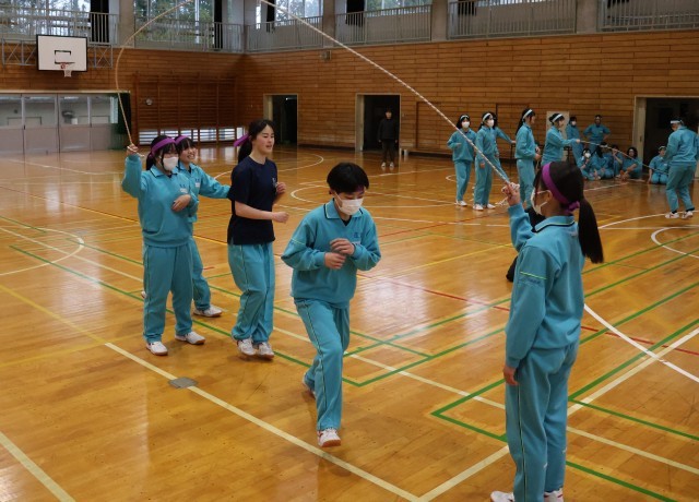 初めはなかなか息が合わない場面もありましたが、さすがは3年生、跳ぶ回数が増え、クラスからの応援も盛り上がっていきました。