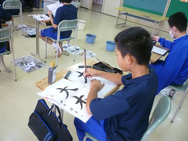 1年生の書写では、「大木」の字に取り組みました。筆の使い方に気をつけながら、一画一画を丁寧に書いていました。集中して、立派な字を書こうと頑張っていました!