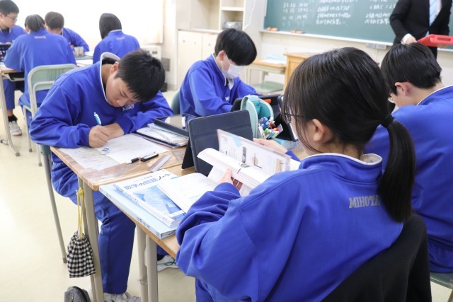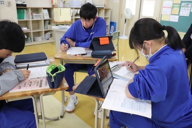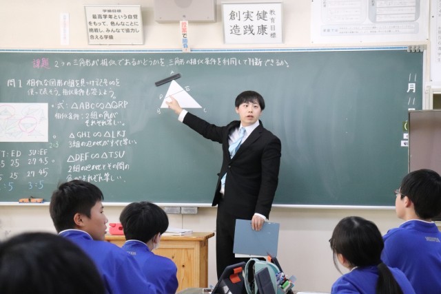 本校では、中学3年生の数学の授業を公開し、小学校の先生方をお招きして小中交流授業研究会を実施しました。授業後の事後研究会では、授業内容や小中連携における算数・数学の課題について意見交換を行い、各校の情報共有もでき、有意義な時間となりました。