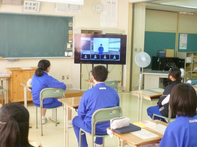 本日、感染症予防のため全校集会をオンラインで実施しました。生徒会長からは、12月を迎え、学期末に向けて授業の参加態度や日常生活の過ごし方をこの機会に見直し、さらによりよい学習環境・生活環境をみんなでつくっていこうという呼びかけがありました。これからも一人ひとりが意識し、安心して過ごせる学校づくりに取り組んでいきましょう。