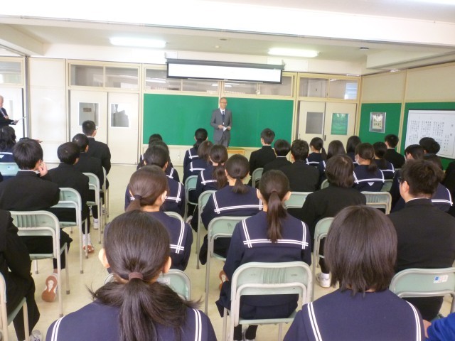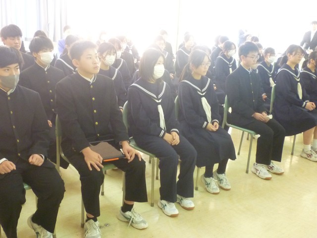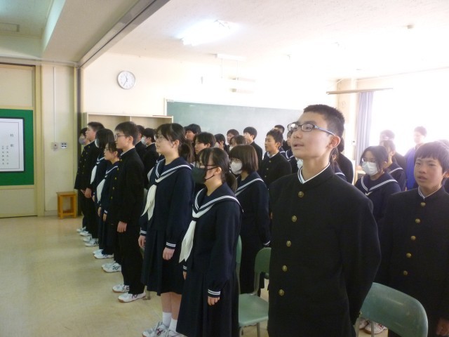 本日、2学期の最終日を迎え、2階ホールにて終業式を行いました。校長先生からは、2学期を振り返り、学校行事や各種コンクールなどに一生懸命取り組んできた生徒一人一人の努力を称えるお話がありました。また、「夢をもつことができたか」「目標に向かって行動できたか」という問いかけを通して、生徒たちは自身を振り返る機会となりました。また、冬休みは、大晦日やお正月を通して家族との時間を大切にし、新しい年を迎える準備をしてほしいとのお話がありました。そして、1月8日の始業式には、元気な姿で再会できることを楽しみにしています、との言葉で締めくくられました。