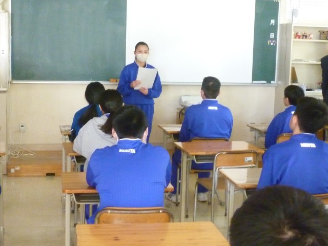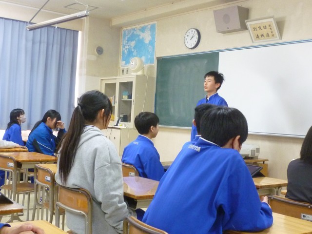 全校集会を行い、来年度の「生徒会スローガン」について話し合いました。各学年で小グループに分かれ、学校スローガンやアンケート結果を参考にしながら意見を出し合いました。出された意見をもとに、生徒会役員が来年度のスローガンを決定していきます。
