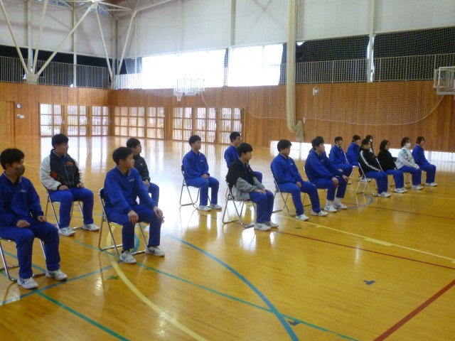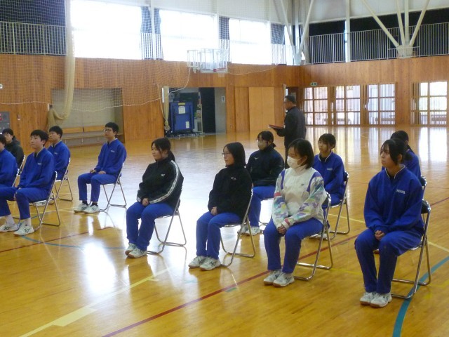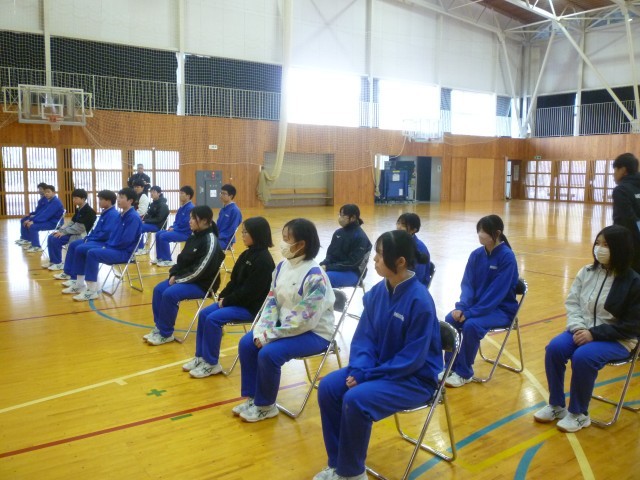 卒業式練習が始まりました。学年主任より、卒業式に向けた心構えや立ち居振る舞い、所作の大切さについて話がありました。卒業式は学校生活の集大成です。一つ一つの動きを丁寧に、感謝の気持ちを込めて取り組むことの大切さを改めて確認しました。本番に向けて、緊張感をもちながら練習を重ねていきます。