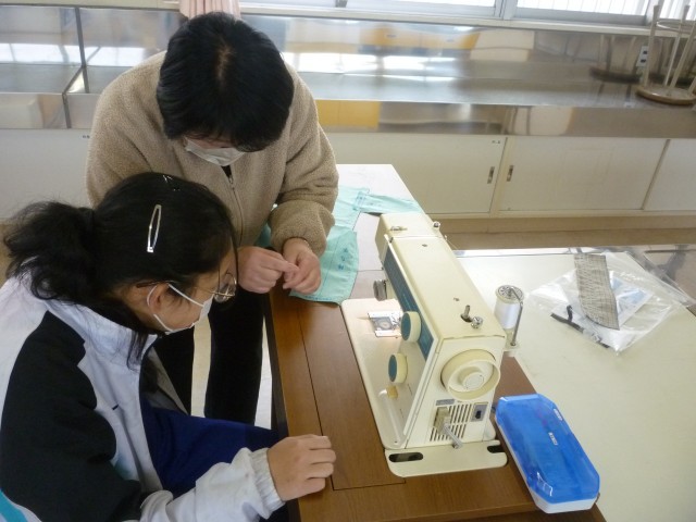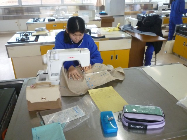 2年生が家庭科で、ミシンを使ったエコバッグづくりに挑戦しています。最初は糸通しや操作に苦戦する様子も見られましたが、慣れてくるとスムーズに作業を進められるようになりました。友達と教え合いながら、集中して取り組んでいます。完成が楽しみです。
