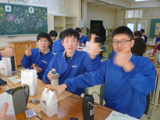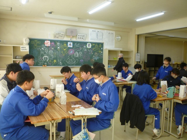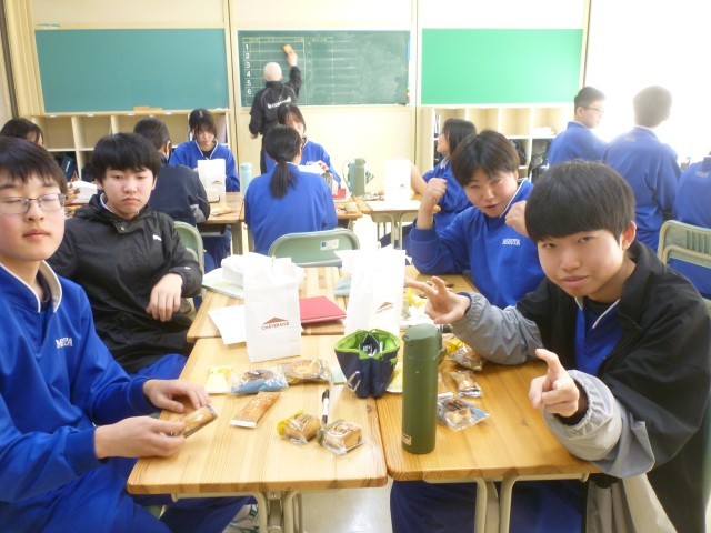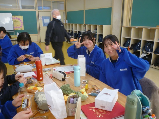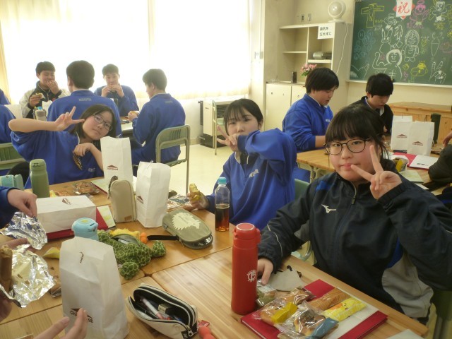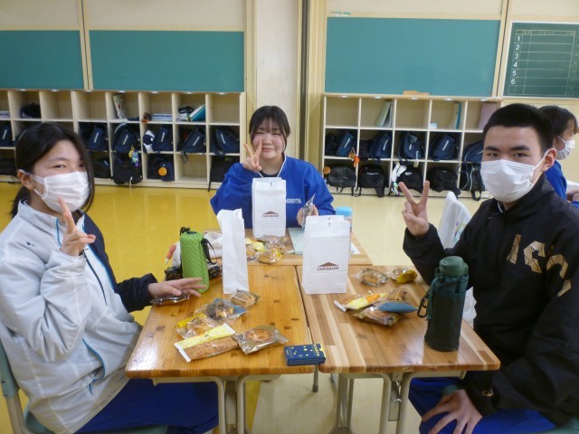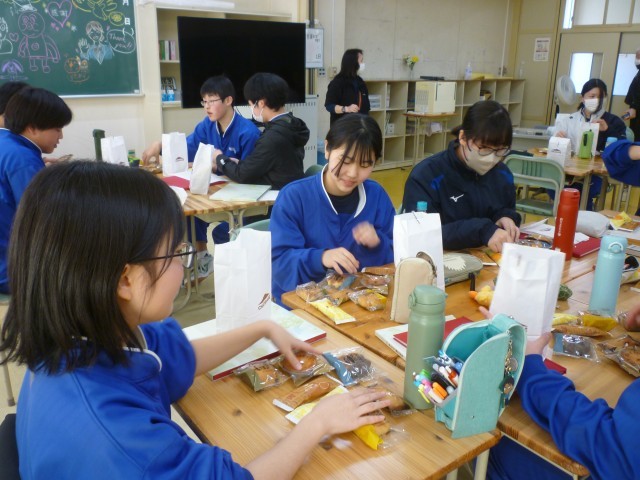 卒業式を前に、3年生の各クラスで学級分散会が行われました。軽食を囲んでのお茶会では、これまでの学校生活を振り返りながら思い出話に花が咲き、教室には笑顔があふれていました。レクリエーションも行われ、友達や先生と和やかな雰囲気の中で楽しい時間を過ごすことができました。いよいよ明日は卒業式です。3年間の思い出を胸に、新たな一歩を踏み出す日を迎えます。