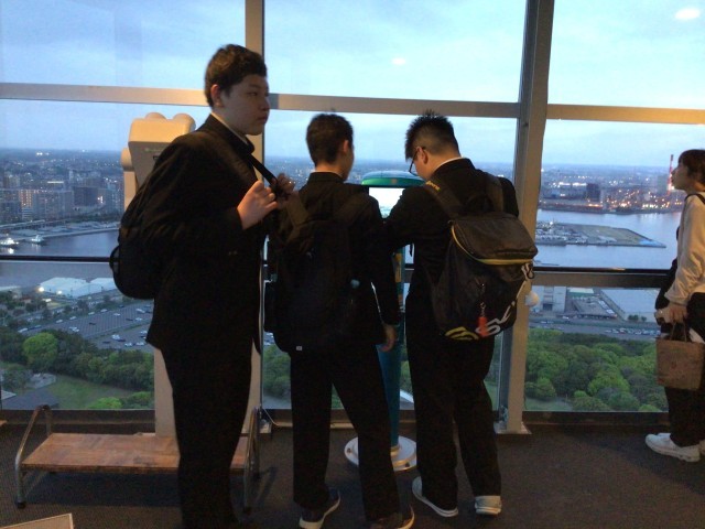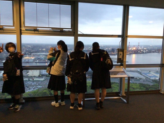 千葉みなと駅で下車。少し歩きましたが、目的地のポートタワーに着きました。4階の展望台から見た港の夜景はとても素敵でした。