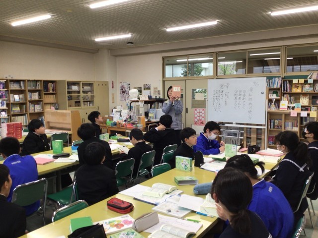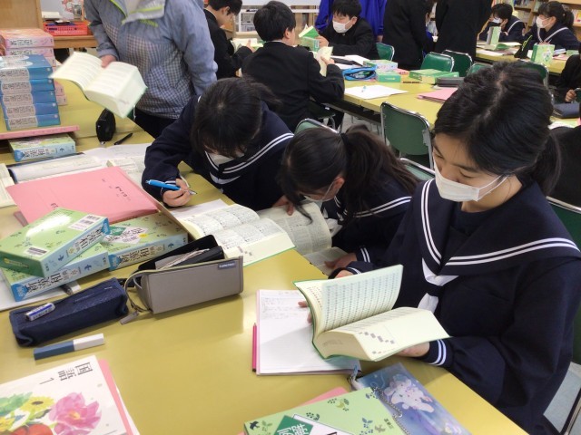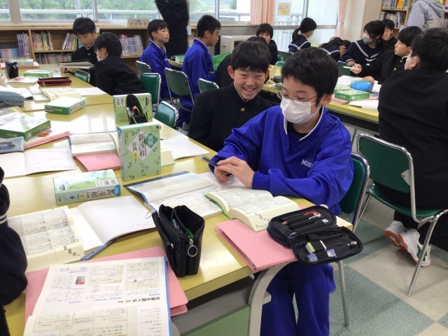 1年生は国語。様々な辞書があることを知るとともに、漢和辞典を使って自分の名前を調べていました。漢字の由来などを知ると、親がどんな思いで名前をつけたのかを知ることができます。