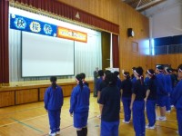 1年生家庭科の夏休みの課題で生徒たちが家庭で料理をしました。その写真(ワークシート)が廊下に掲示されています。