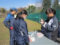 放課後部活動反省会を行いました。3年生から後輩に託す思いを話していました。1,2年生のみなさんにバントが渡されました。3年生の皆さんありがとうございました。