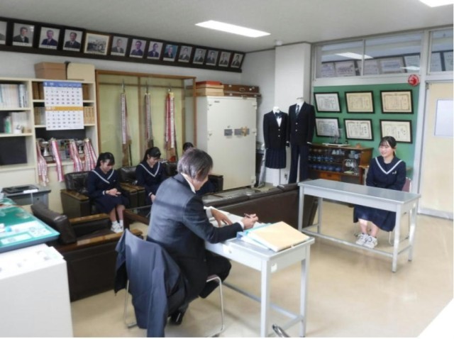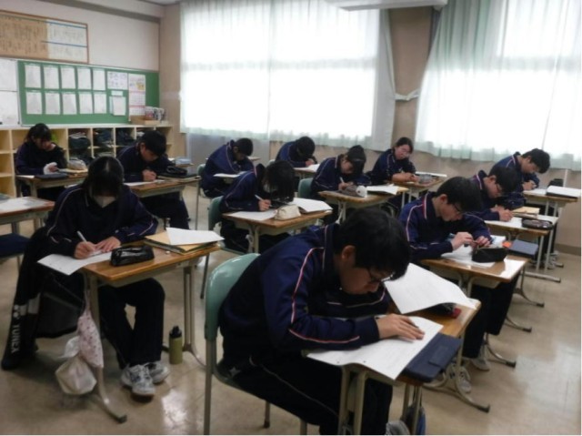 明日で長かった2学期が終了です。各学年の様子です。1年生は、来年の学習旅行調べを行っていました。2年生は、数学のテスト問題の見直しです。3年生は、受験向けて校長室で面接練習を行っていました。来年に向けての準備や復習に頑張っています。
