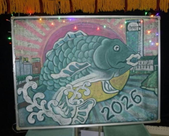 3学期が始まって、5日目です。朝の雪掃きに1、2年生ありがとうございます。お家の方の送迎と重なる時間なので事故のないようにお互いに気をつけてください。黒板アートが新年バージョンが完成しました。生徒昇降口に飾ってあります。