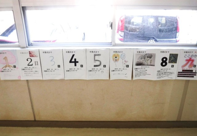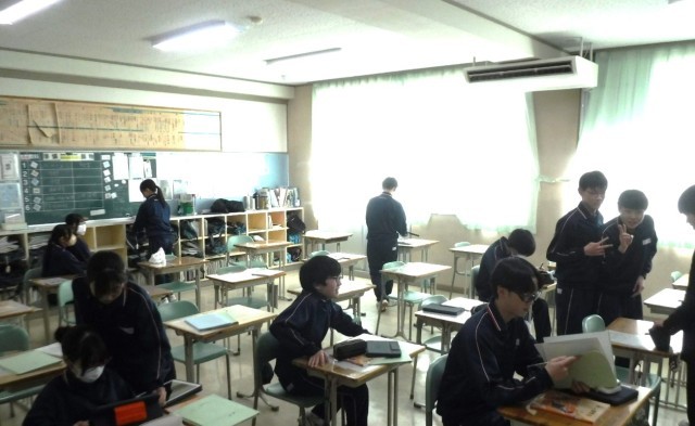 寒さが一段落し、今日から少しずつ暖かくなるようです。春は一日一日近づいています。卒業までのカウントダウンを生徒会役員の方が貼ってくれました。何気ない日の昼休みの様子です。自分の時間を有効活用していたり、友人とくつろいでみたり、ピアノ演奏の練習したり、面接練習の準備をしたりとさまざまです。何気ない時間が中学生にとっては、青春ですね。