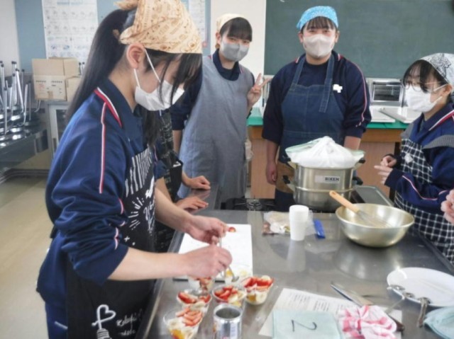 3校時に3年生は調理実習を行いました。蒸しパンを作って、ヨーグルトとフルーツを盛り合わせました。おいしそうでした。上手にできました。