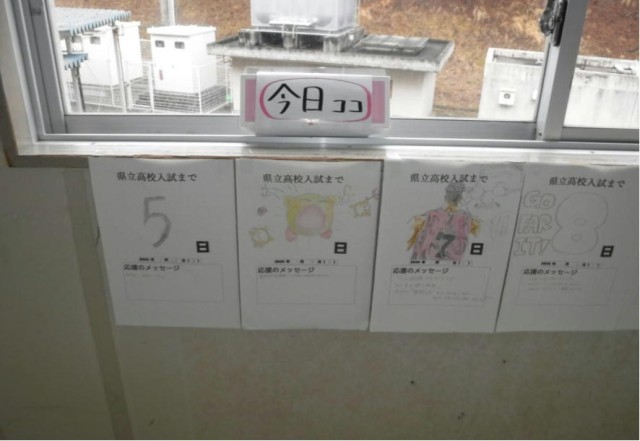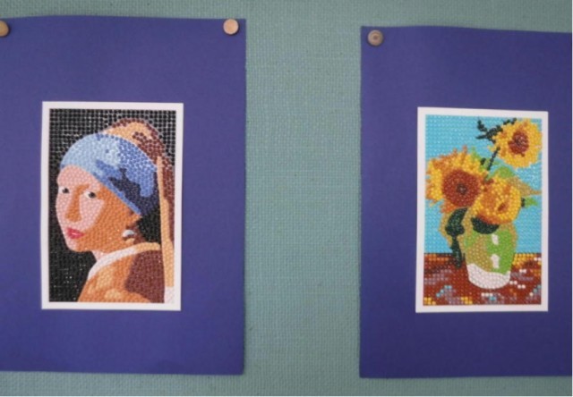 2月も残りわずかです。来週はいよいよ県立高校前期選抜入試です。受験をする3年生は体調管理を万全にして臨んでほしいと思います。学習会に掲示しているアート作品です。細かい作業を丁寧に仕上げています。