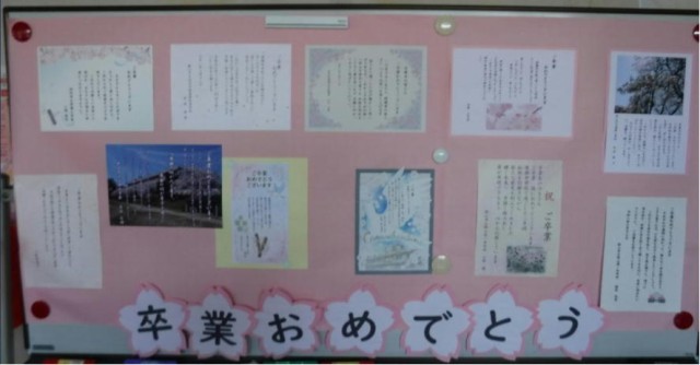 いよいよ卒業式前日です。3年生は教室で3年間の思い出を発表していました。明日は最高の卒業式にしてほしいです。廊下や体育館など祝電やお花が整ってきました。