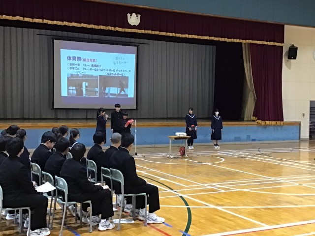 本日、5、6校時に新1年生への歓迎会を実施。