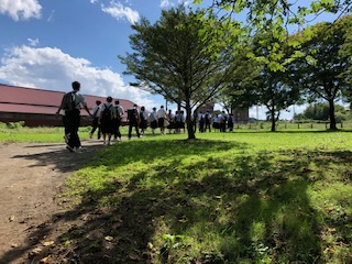 青空の下、東京ドーム640個分の大きさの小岩井農場を散策中です。のんびりとした時間を楽しんでいます。