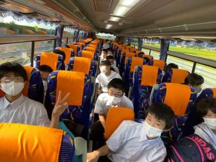1年生は高速道路にのって、順調に会津にむけて移動中です。バスの中も楽しそうです。