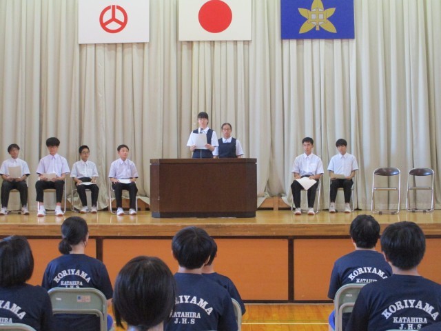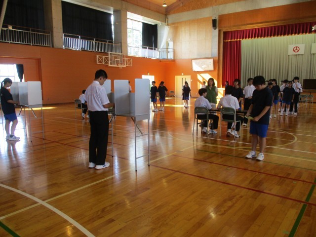 本日、生徒会役員選挙立会演説会がありました。今回は各役職とも定数に収まり、信任投票となりました。立候補者から熱い思いが語られ、これからの片平中学校の今後が楽しみになりました。