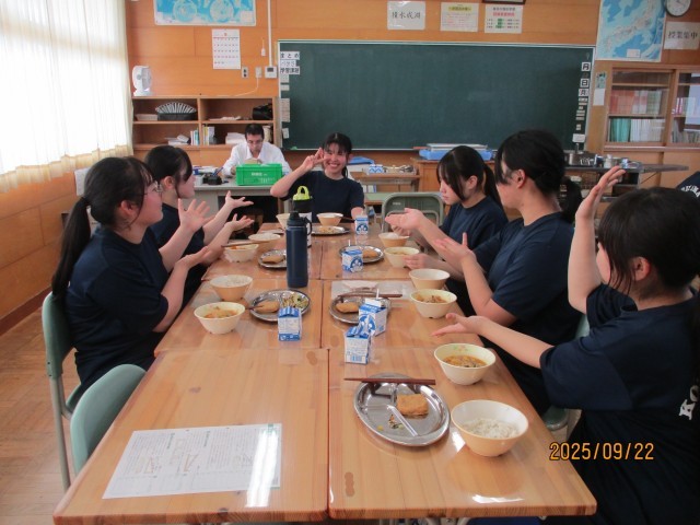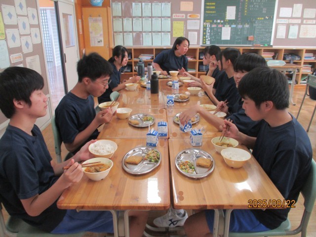 メニューは、麦ごはん、肉詰めいなり、枝豆の和風サラダ、キムチ肉じゃがでした。